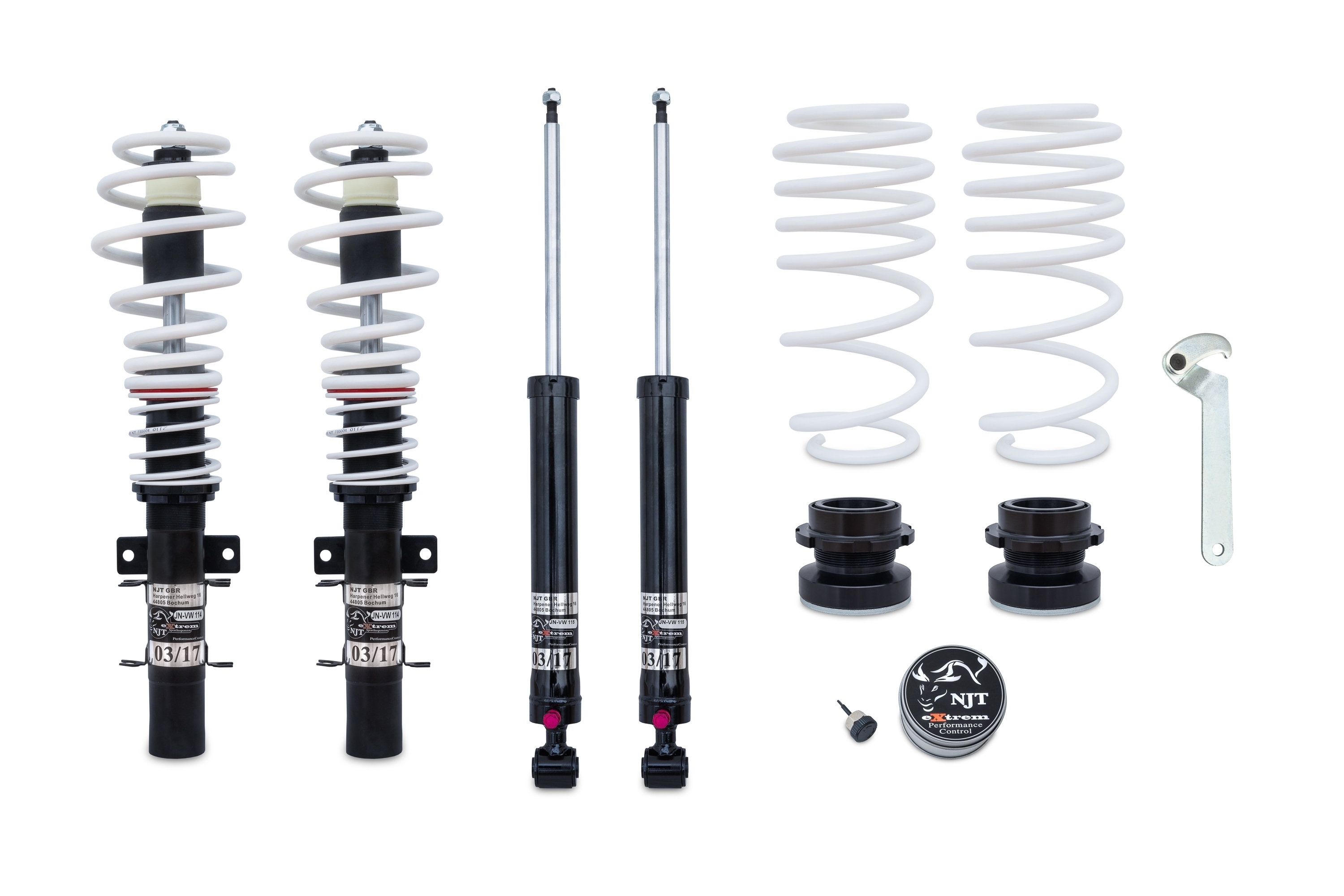 Opnå maksimal sænkning og fuld fleksibilitet med NJT eXtrem gevindundervogn til Skoda Fabia 6Y inkl. Kombi. Undervognen er både højde- og hårdhedsjusterbar, så du kan tilpasse bilens køreegenskaber præcist efter dine behov – fra eXtremt sportslig performance til komfortabel hverdagskørsel.