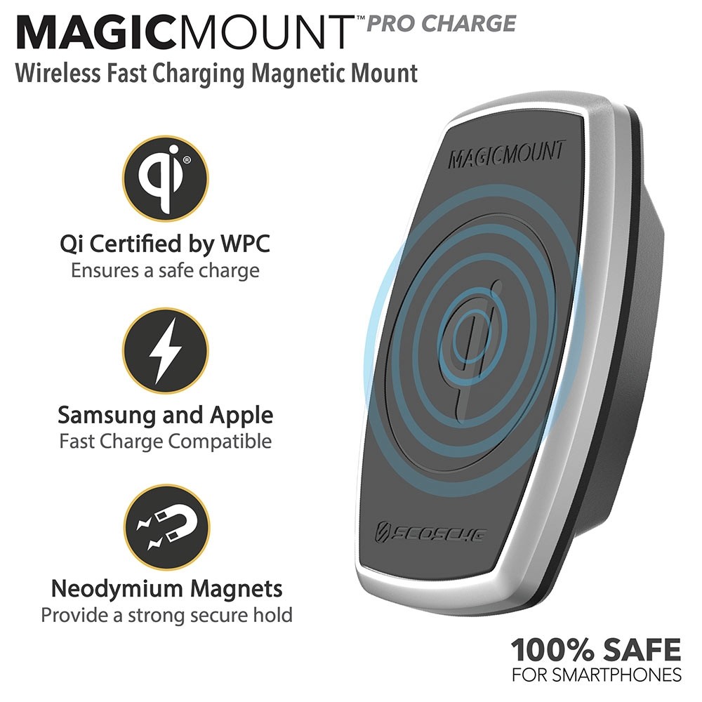 Scosche har kombineret den nyeste Qi trådløse opladningsteknologi med den prisvindende mobilholderserie Magic Mount og skabt den ultimative løsning med håndfri magnetisk montering og trådløs opladning i en holder.
