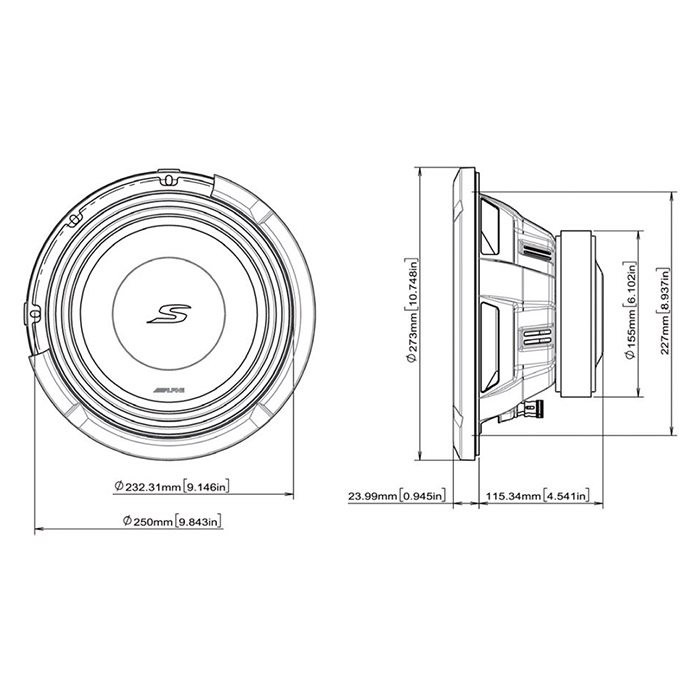 Alpine S2-W10D2 10" subwoofer dobbelt 2 ohm