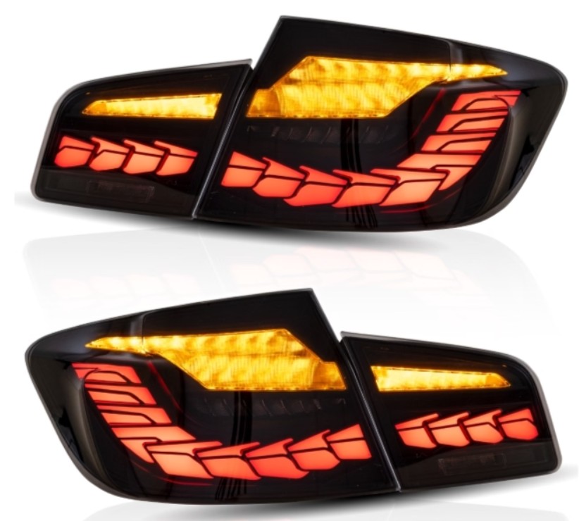 Opgrader din BMW F10 med eksklusive OLED baglygter i moderne smoke design med dynamiske blink og flot lysanimation ved oplåsning.
