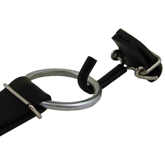 Kraftig gummirem med metalkroge i begge ender.